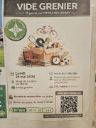 Vide grenier stade de lusigny 25 mai 2026 , 2euros le metre. Exposants particuliers uniquement Inscription au 09 72 34 85 48 -