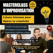 Stage intensif d’improvisation à Troyes : 2 jours pour développer créativité, confiance et spontanéité. Accessible à tous, débutants et comédiens intermédiaires. 6ème édition Plongez dans l’univers de l’improvisation Deux jours intensifs pour libérer votre imagination, renforcer votre confiance et découvrir... -
